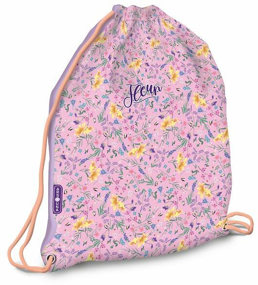 Az Ars Una tornazsákon rózsaszín alapon virágok vannak.