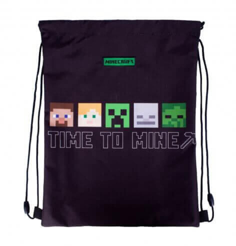 Minecraft mintás tornazsák (Time to Mine) a tornaruha, cipő, papucs vagy úszófelszerelés tárolására.