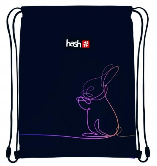 Rainbow Bunny nyuszis tornazsák - Hash cuki nyuszival az elején. Teteje erős, strapabíró madzaggal szűkíthető, a tornazsákra a tulajdonos nevét és címét felírhatjuk.