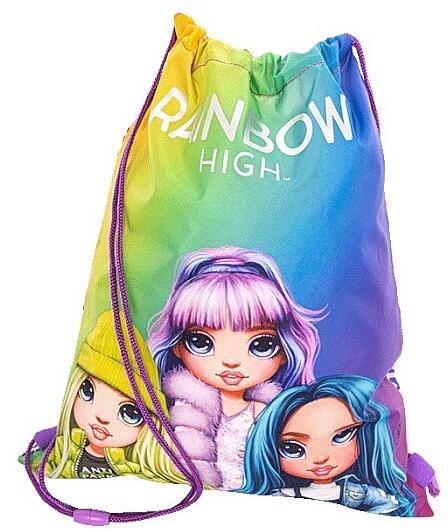Minőségi gyerek tornazsák vidám divatos ombre mintával, hideg színekben. A csajos tornazsákot a Rainbow High Fashion divatbabák dekorálják. Tökéletes választás kislányoknak iskolába, vásárláshoz, sportoláshoz és sok más alkalomra.