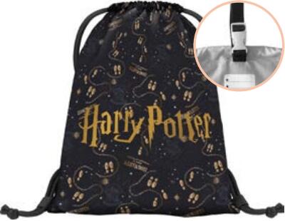 A fekete tornazsákon a Harry Potter filmekből ismert tekergők tréképe adja a mintát.
