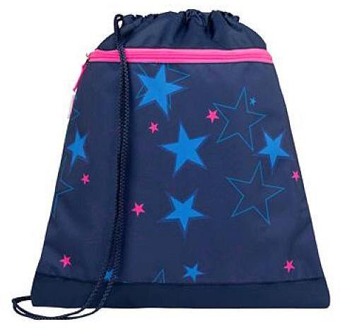 Belmil tornazsák - Sparkling StarTornazsák, hátizsák lányoknak Minőségi gyerek tornazsák, sötétkék alapszínen kék és pink csillagok mintázzák. Tökéletes választás kislányoknak iskolába, vásárláshoz, sportoláshoz és sok más alkalomra. Jellemzői:- a zsinór összehúzásával egyszerűen záródik- akár hátizsákként is hordható- elején egy cipzáros zseb is található a kisebb eszközök, kulcs, telefon, pénztárca tárolására- erős, tartós anyagból készült- mosás közben nem deformálódik és nem gyűrődik Méret: 43 x 45 cmMinta: csillagosGyártó: BelmilAjánlott: iskolás kortól