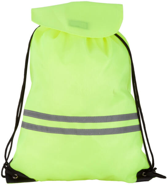 Jól láthatósági hátizsák zsinór vállpánttal, az elején fényvisszaverő csíkkal és tépőzárral. A termék kizárólag promóciós célra alkalmas, nem minősül egyéni védőfelszerelésnek.