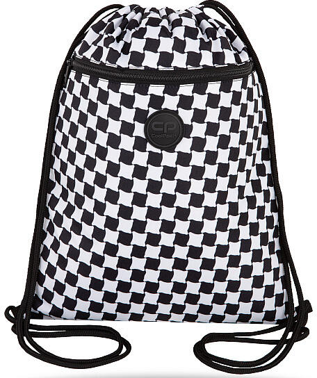 A minőségi gyerek tornazsák mintája fekete-fehér kockás, old school stílusú.
