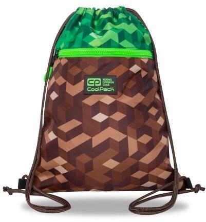 A Minecraft játék hangulatát idézi a zöld és barna 3 dimenziós kockákkal dekorált tornazsák. A gamereknek készült sportzsák vagány és divatos mintájával azonnal kiemel a hétköznapok szürkeségéből. Praktikusan zsinórral záródik, mely egy vagy két vállon is hordható, így akár hátizsáknak is tudják használni a kamaszok. Az iskolai tornazsák erős, strapabíró anyagból készült, elején egy cipzáros zseb is található a kisebb eszközök, kulcs, telefon, pénztárca tárolására.