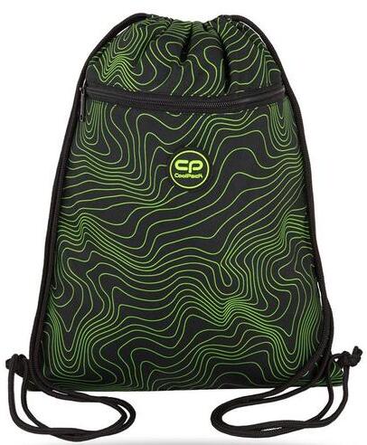 Ez a Coolpack - Vert zsinóros hátizsák, tornazsák - Nefryt (F070898) hátizsák, mely menő zöld mintával díszített, kiválóan alkalmas bevásárlások, kirándulások alkalmával vagy sportoláshoz is. Egy nagy tágas és elején egy kisebb zsebbel rendelkezik, mely kiválóan alkalmas a kisebb tárgyak elkülönítésére, pl. telefon. Tetejét erős zsinórral lehet összehúzni.
