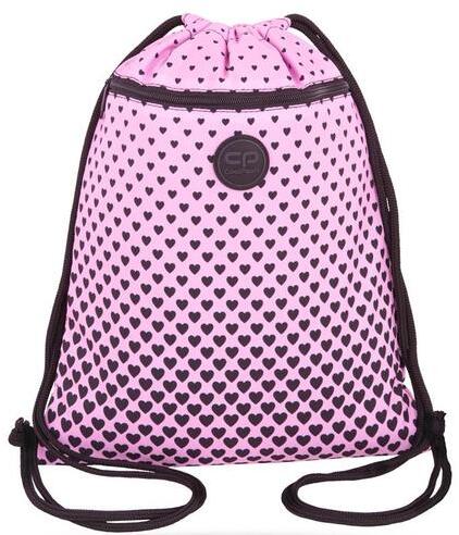 Ez a Coolpack - Vert zsinóros hátizsák, tornazsák - Pink Marshmallow (F070893) hátizsák, mely menő szív mintával díszített, kiválóan alkalmas bevásárlások, kirándulások alkalmával vagy sportoláshoz is. Egy nagy tágas és elején egy kisebb zsebbel rendelkezik, mely kiválóan alkalmas a kisebb tárgyak elkülönítésére, pl. telefon. Tetejét erős zsinórral lehet összehúzni.