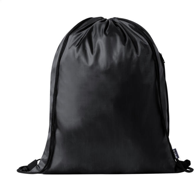 RPET összehúzható hátizsák cipzáras oldalzsebbel, 210T RPET poliészter, megkülönböztető RPET címkével.