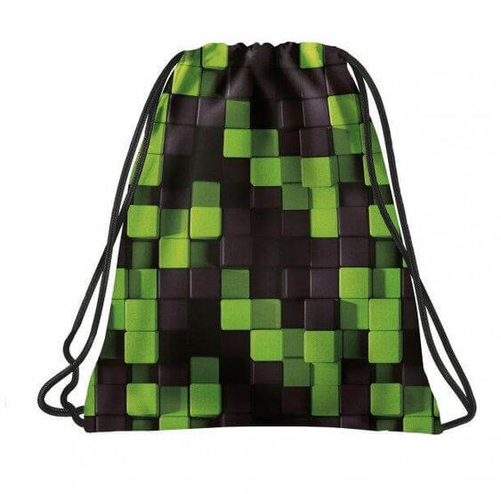 BackUp Geometrikus tornazsák - Zöld pixelek (WOB6A52) teteje madzaggal szűkíthető. Iskolai testnevelés órára vagy kisebb kirándulásra is remek választás.