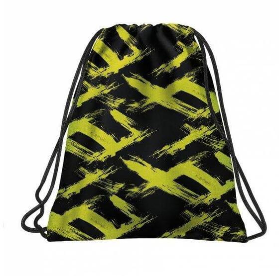 BackUp Neon tornazsák - Sárga ecsetvonások (WOB6A54) teteje madzaggal szűkíthető. Iskolai testnevelés órára vagy kisebb kirándulásra is remek választás.