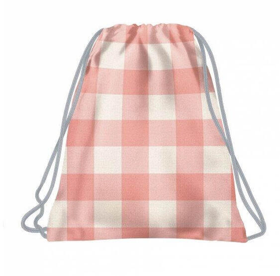 BackUp Pasztell tornazsák - Barackvirág kockákkal (WOB6A34) teteje madzaggal szűkíthető. Iskolai testnevelés órára vagy kisebb kirándulásra is remek választás.