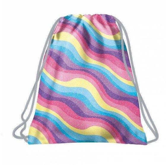 BackUp Pasztell tornazsák - Színes hullámok (WOB6A21) teteje madzaggal szűkíthető. Iskolai testnevelés órára vagy kisebb kirándulásra is remek választás.