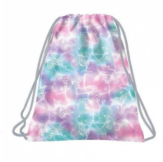 BackUp Pillangós tornazsák - Pasztell varázslat (WOB6A10) teteje madzaggal szűkíthető. Iskolai testnevelés órára vagy kisebb kirándulásra is remek választás.