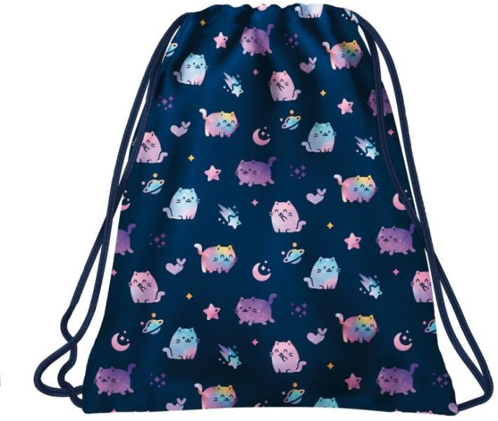 Engedd, hogy gyermeked képzelete a csillagok közé repüljön ezzel a tornazsákkal, amelyet sötétkék égbolton bolygóként keringő cicák és égitestek díszítenek! Az égitestek között lebegő cuki cicák különleges varázst csempésznek a mindennapokba, miközben a tornazsák praktikus kialakítása tökéletes társ a sportfelszerelések szállításában. A gyerek tornazsák a hosszú, tömör zsinórokkal könnyen összehúzható, háton és vállon is hordható. Kényelmesen elfér benne a tornaruha/úszónadrág, törölköző és egy pár tornacipő/sportcipő is. a hosszú, tömör zsinóroknak köszönhetően a tornazsák hátizsákként is használható jó minőségű anyagból készült tökéletes sporttevékenységekhez, uszodához vagy kirándulásokhoz a tornazsák mérete: 41 x 35 cm súly: 33 g