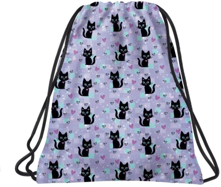 Vidd magaddal a lágyság és a játékosság varázsát ezzel a pasztell lila alapszínű tornazsákkal, amelyet fekete cicák és szívecskék díszítenek! A gyerek tornazsák a hosszú, tömör zsinórokkal könnyen összehúzható, háton és vállon is hordható. Kényelmesen elfér benne a tornaruha/úszónadrág, törölköző és egy pár tornacipő/sportcipő is. a hosszú, tömör zsinóroknak köszönhetően a tornazsák hátizsákként is használható jó minőségű anyagból készült tökéletes sporttevékenységekhez, uszodához vagy kirándulásokhoz a tornazsák mérete: 41 x 35 cm súly: 33 g