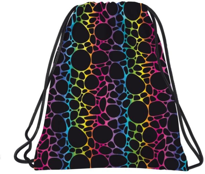 Fedezd fel a kreativitás határtalan világát ezzel a fekete alapszínű tornazsákkal, amelyet szivárványszínű absztrakt formák díszítenek! A vibráló színek és az egyedi formák egy izgalmas művészeti alkotássá varázsolják a tornazsákot, miközben inspirálnak a színek erejével és dinamizmusával. A gyerek tornazsák a hosszú, tömör zsinórokkal könnyen összehúzható, háton és vállon is hordható. Kényelmesen elfér benne a tornaruha/úszónadrág, törölköző és egy pár tornacipő/sportcipő is. a hosszú, tömör zsinóroknak köszönhetően a tornazsák hátizsákként is használható jó minőségű anyagból készült tökéletes sporttevékenységekhez, uszodához vagy kirándulásokhoz a tornazsák mérete: 41 x 35 cm súly: 33 g