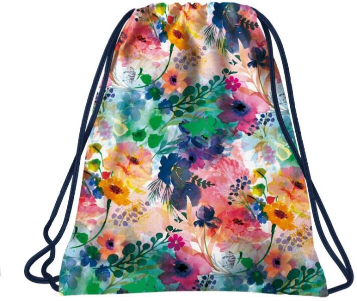 Vidd magaddal a művészet és a természet harmóniáját ezzel a flower aquarell art dekorációval készült tornazsákkal! A finom, akvarell technikával megfestett virágok lágy színei nemcsak esztétikus megjelenést kölcsönöznek, hanem inspirációt is nyújtanak minden iskolai naphoz. A gyerek tornazsák a hosszú, tömör zsinórokkal könnyen összehúzható, háton és vállon is hordható. Kényelmesen elfér benne a tornaruha/úszónadrág, törölköző és egy pár tornacipő/sportcipő is. a hosszú, tömör zsinóroknak köszönhetően a tornazsák hátizsákként is használható jó minőségű anyagból készült tökéletes sporttevékenységekhez, uszodához vagy kirándulásokhoz a tornazsák mérete: 41 x 35 cm súly: 33 g