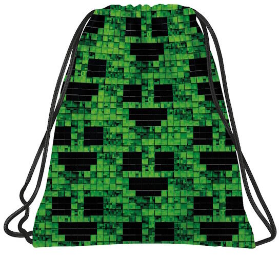 Az élénk zöld színű pixel kockás tornazsák a számítógépes játék kedvelőinek készült. A zsinórja segítségével egy mozdulattal zárható és nyitható, a gyerekek könnyen kezelik.