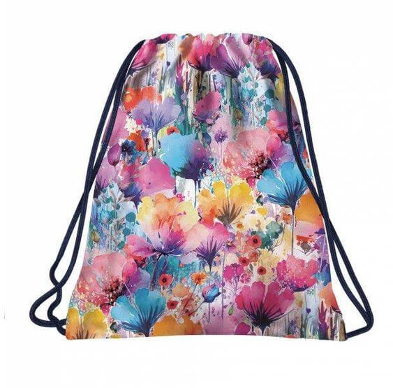 BackUp Virágos tornazsák - Nyári virágok (WOB6A09) teteje madzaggal szűkíthető. Iskolai testnevelés órára vagy kisebb kirándulásra is remek választás.