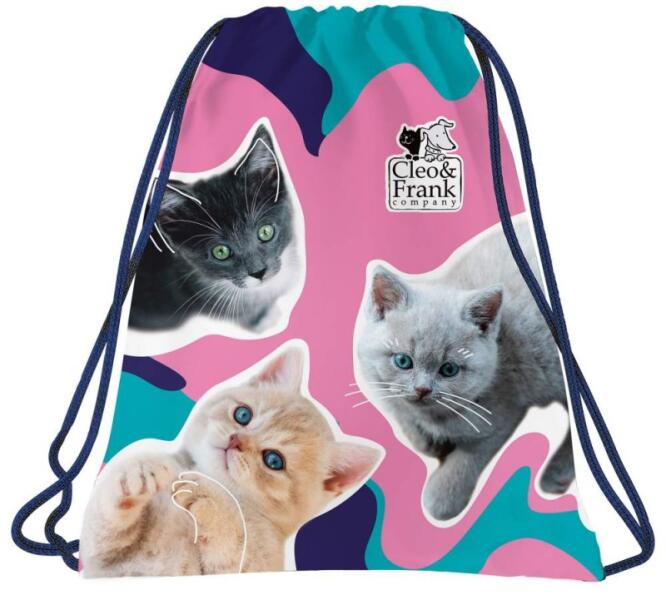 A Cleo & Frank cicás tornazsák a cicakedvelő kislányoknak készült. Egyszerű és praktikus tornazsák. A gyermek tornazsák a hosszú, tömör zsinórokkal könnyen összehúzható és hátizsákként is használható. Testnevelés órára, edzésre, uszodába, kisebb kirándulásra egyaránt jó választás, mert kényelmesen elfér benne a tornaruha/úszódressz, törölköző és egy pár tornacipő/sportcipő is. A tornazsákhoz válassz hozzá illő pasztell színű hátizsákot és tolltartót. A BackUp pasztell színű iskolafelszereléseivel trendi szettet alakíthatsz ki magadnak. Mérete: 41 x 35 cm