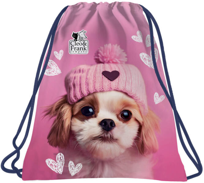 Cleo and Frank tornazsák, 41x35cm, CF42, kutyás, rózsaszín. Dupla zsínóros, hordhatod a kezedben, a válladon vagy a hátadon is. Méret: 41x35cm. Súly: 45g