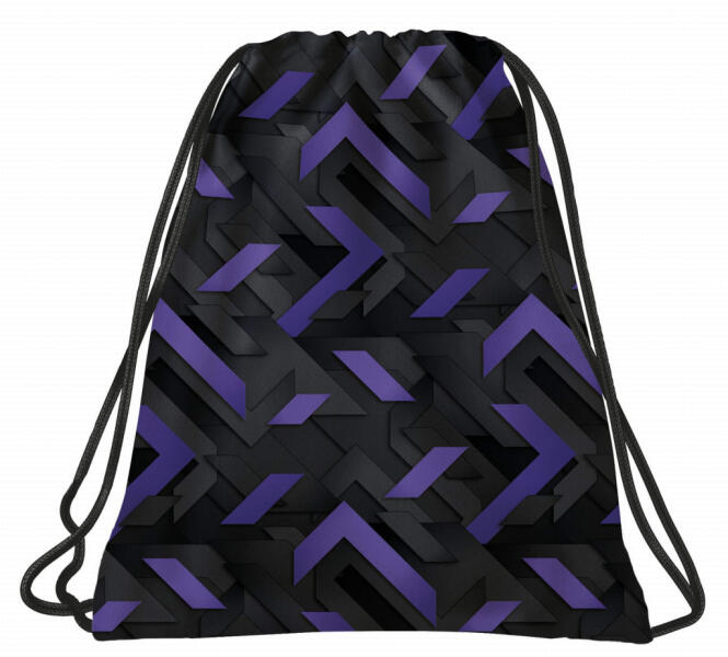 Lányos tornazsák, 41x35cm, BackUp, 2025, A47, fekete-lila. Dupla zsínóros, hordhatod a kezedben, a válladon vagy a hátadon is. Méret: 41x35cm. Súly: 33g