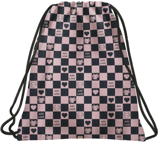 Pepita tornazsák, 41x35cm, BackUp, 2025, A15, axolotl mintával. Dupla zsínóros, hordhatod a kezedben, a válladon vagy a hátadon is. Méret: 41x35cm. Súly: 33g