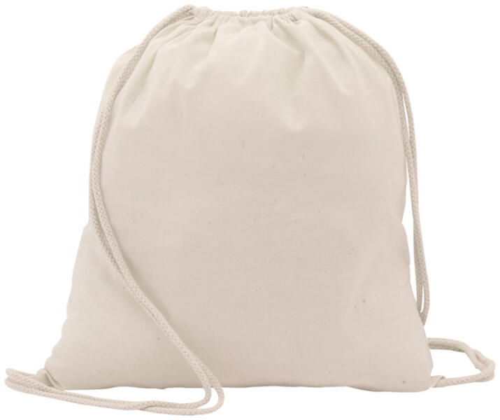 Pamut, zsinórral összehúzható hátizsák. 100% pamut, 100 g/m2.