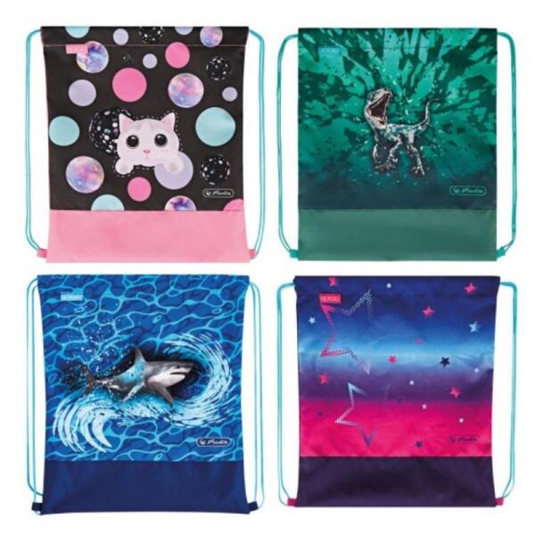 Herlitz tornazsák 36,5x40,5x0,5 cm-es méretben, húzózsinórral. Anyaga: poliészter, vegyes mintákkal. Az ár csak 1 db-ra érvényes!