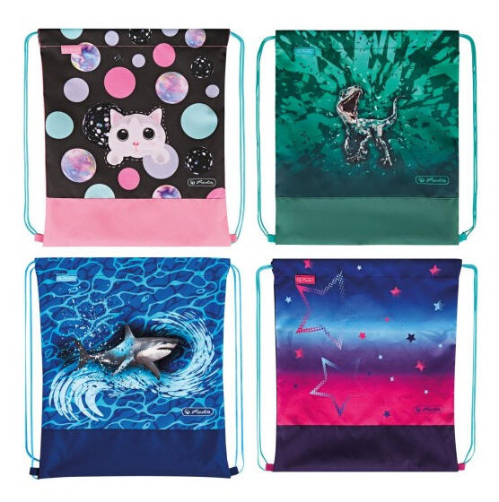 Tornazsák húzózsinórral, 4 különböző mintával. Méret: 36,5x40,5x0,5 cmAnyag: poliészter