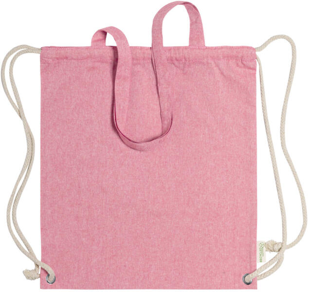Pamut táska újrahasznosított pamutból, vastag fonott zsinórral és hosszú hordfüllel. Bevásárlótáskaként is használható. 100% újrahasznosított pamut, 140 g/m2.