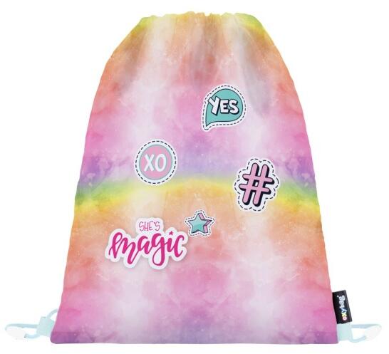 Ez a minőségi Oxybag tornazsák garantáltan a lányok kedvence lesz. Az iskolai tornazsák élénk pink, lila és zöld árnyalatokban pompázik, amit játékos minták, például hashtag és „XO díszítések egészítenek ki.