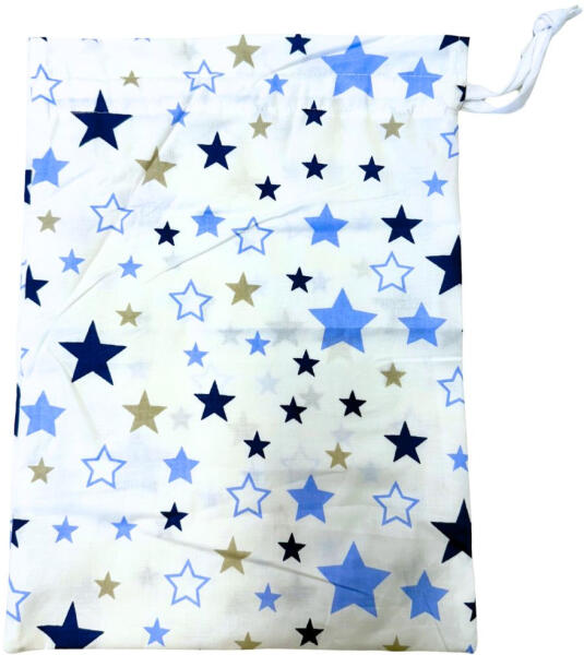 Kék csillagos tornazsák Kiváló minőségű, 100% pamutból készült tornazsák. Óvodába és iskolába is egyaránt ideális választás, melybe a gyermek könnyedén tárolhatkja tornafelszerelését. A tornazsák a tetejébe varrt zsinorral záródik. Méretei: 28x38 cm.