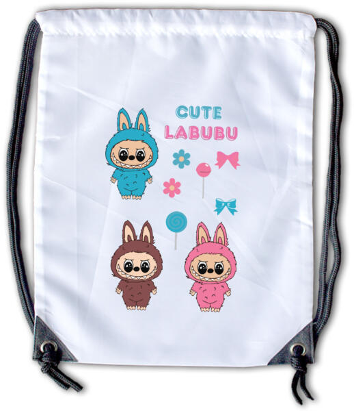 Vidám, Labubu mintás tornazsák strapabíró anyagból. Könnyű, praktikus, ideális ovisoknak és iskolásoknak mindennapi használatra.