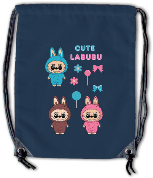 Vidám, Labubu mintás tornazsák strapabíró anyagból. Könnyű, praktikus, ideális ovisoknak és iskolásoknak mindennapi használatra.