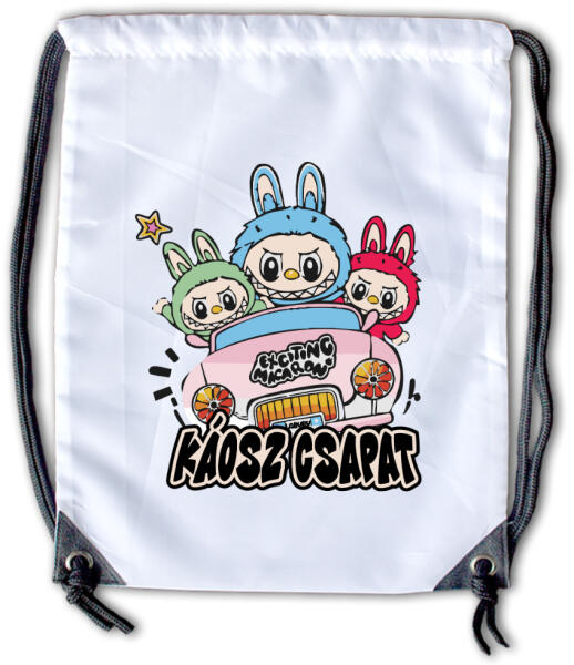 Vidám, Labubu mintás tornazsák strapabíró anyagból. Könnyű, praktikus, ideális ovisoknak és iskolásoknak mindennapi használatra.