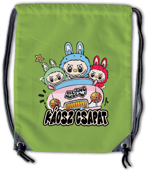 Vidám, Labubu mintás tornazsák strapabíró anyagból. Könnyű, praktikus, ideális ovisoknak és iskolásoknak mindennapi használatra.