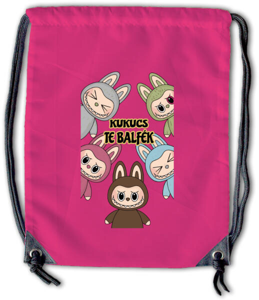 Vidám, Labubu mintás tornazsák strapabíró anyagból. Könnyű, praktikus, ideális ovisoknak és iskolásoknak mindennapi használatra.