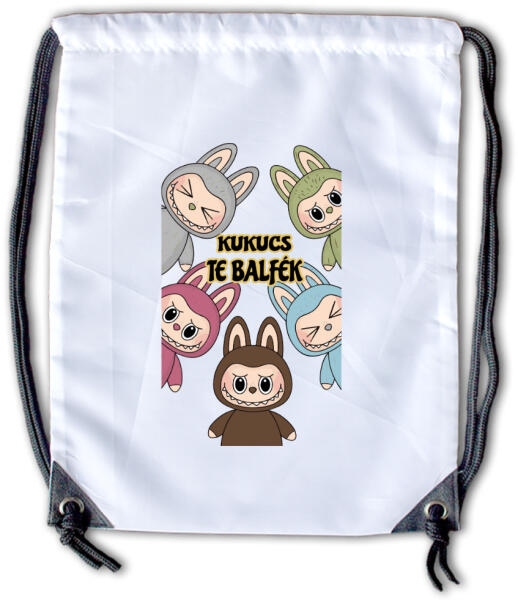 Vidám, Labubu mintás tornazsák strapabíró anyagból. Könnyű, praktikus, ideális ovisoknak és iskolásoknak mindennapi használatra.