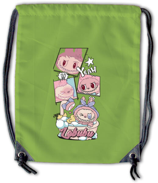Vidám, Labubu mintás tornazsák strapabíró anyagból. Könnyű, praktikus, ideális ovisoknak és iskolásoknak mindennapi használatra.