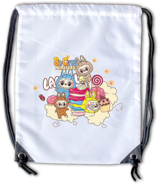Vidám, Labubu mintás tornazsák strapabíró anyagból. Könnyű, praktikus, ideális ovisoknak és iskolásoknak mindennapi használatra.