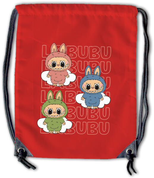 Vidám, Labubu mintás tornazsák strapabíró anyagból. Könnyű, praktikus, ideális ovisoknak és iskolásoknak mindennapi használatra.