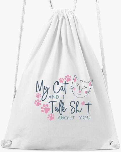 My Cat and I tornazsákMy cat and I talk shit about You vicces felirat cicagazdiknak, rózsaszíntappancsos designokkal...
