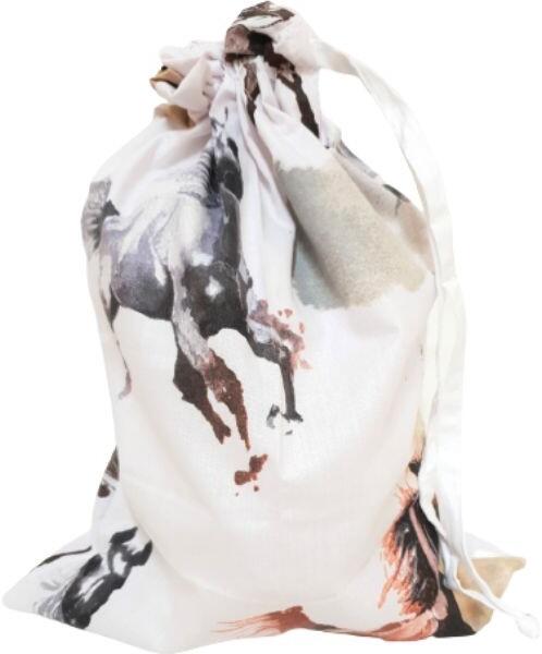 Lovas tornazsákLovas mintás pamut tornazsák Kiváló minőségű, 100% pamutból készült tornazsák. Óvodába és iskolába is egyaránt ideális választás, melybe a gyermek könnyedén tárolhatkja tornafelszerelését. A tornazsák a tetejébe varrt zsinorral záródik. Méretei: 28x38 cm.