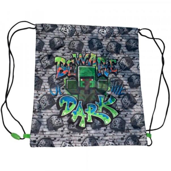 Szürke színű Minecraft sporttáska, tornazsák. Pakoljatok bele minden tornaórához szükséges felszerelést, és vigyétek magatokkal az oviba, suliba.