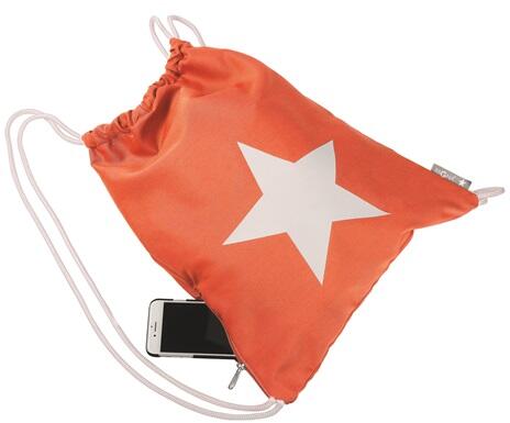 Két hordozózsinórral felszerelt, színes, csillagmintás táska mely menő társ a modern iskolai életben. A tornazsák egy kis cipzáras zsebbel rendelkezik, amelyben a kulcsok és a mobiltelefonok is biztonságban és könnyen hozzáférhetőek. 80% pamutból és 20% poliészterből készült. Méret: 450x350x10 mmSzínek: narancs, lila, zöld és sötétrózsa