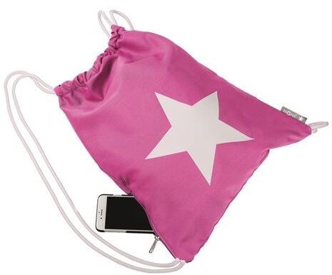 Két hordozózsinórral felszerelt, színes, csillagmintás táska mely menő társ a modern iskolai életben. A tornazsák egy kis cipzáras zsebbel rendelkezik, amelyben a kulcsok és a mobiltelefonok is biztonságban és könnyen hozzáférhetőek. 80% pamutból és 20% poliészterből készült. Méret: 450x350x10 mmSzínek: narancs, lila, zöld és sötétrózsa