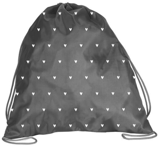 A BeUniq Szivecskés tornazsák - szürke (BU24HT-714)  cuki, szivecskés mintával díszített, a kisiskolások kedvence lesz! A tornazsák teteje madzaggal szűkíthető. Tornaórára, kirándulásokra vagy akár a hétköznapokra is tökéletes választás.