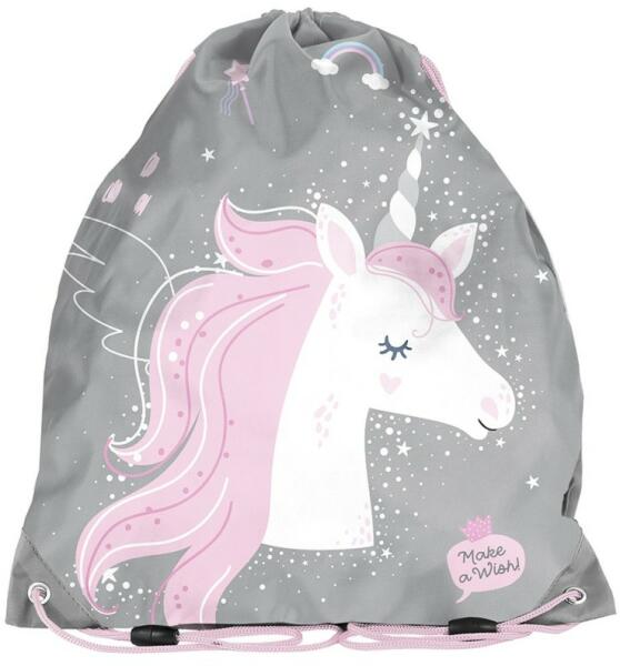 A bájos pasztell rózsaszín és ezüst színű tornazsák elején a varázslatos rózsaszín sörényű unikornissal azonnal elvarázsolja a kislányokat. A praktikus tornazsákban minden elfér, amit torna órára vagy edzésre magaddal kell vinned. Hosszú, tömör zsinórjaival könnyen összezárható és még a hátadra is fel tudod venni. Kisebb gyerekek is könnyen megtanulják használatát. Ugyanilyen dekorációval hátizsákot és tolltartót is találsz webshopunkban!Mérete: 45 x 34 cm