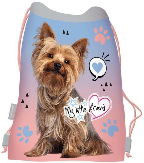 My little friend - Kutyás tornazsák (668463)  eleje cuki, yorki kutyussal, hátulja szintén kutyás mintával ellátott. Teteje madzaggal szűkíthető, egy nagy tágas zsebbel  rendelkezik. A Kutyás tornazsákot hordhatod testnevelés órára vagy edzésre! A hátulján található névtáblára ráírhatod nevedet, ha esetleg elveszítenéd, tudják ki a tulajdonosa.